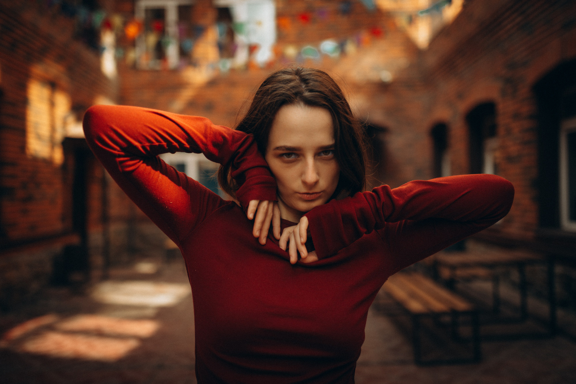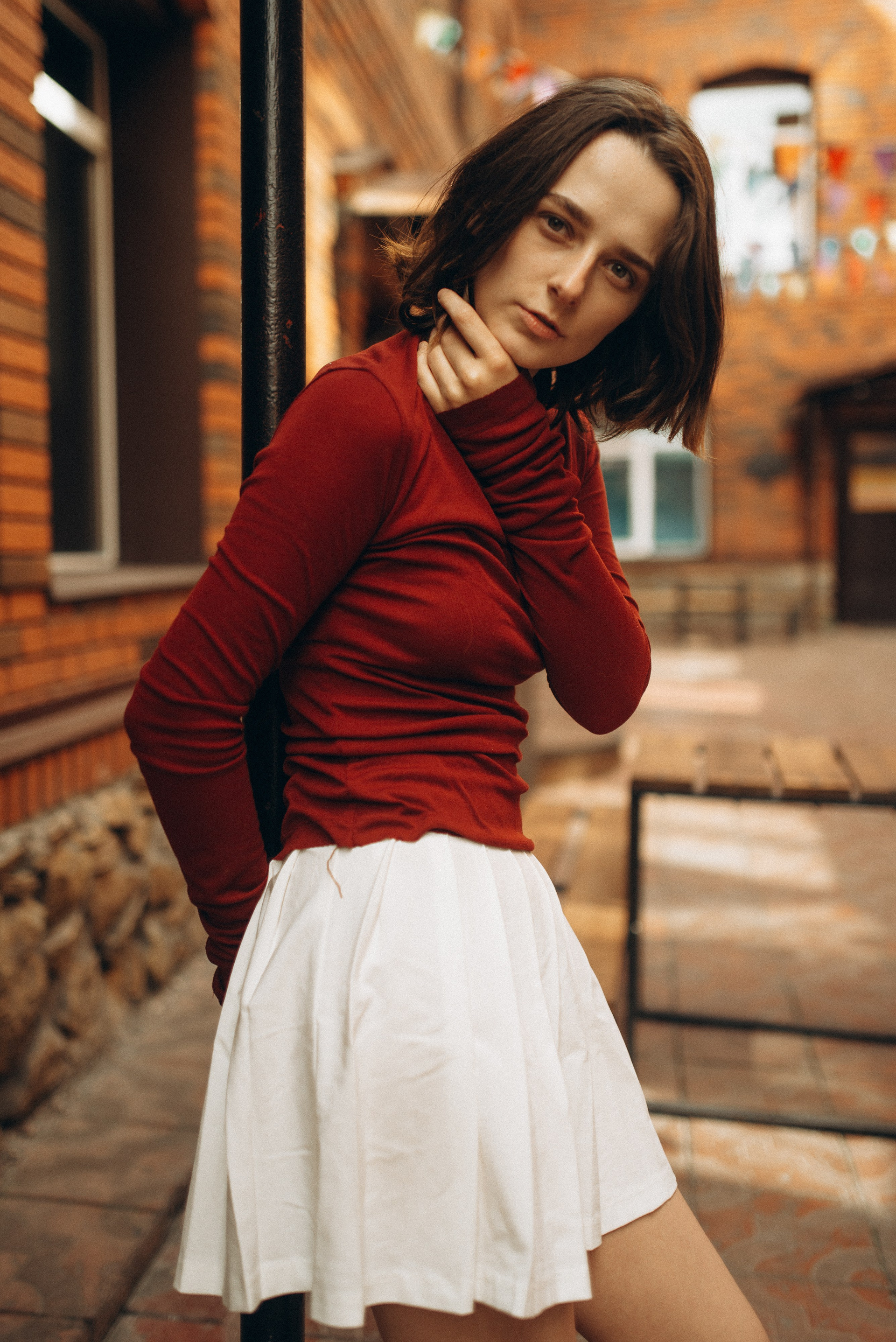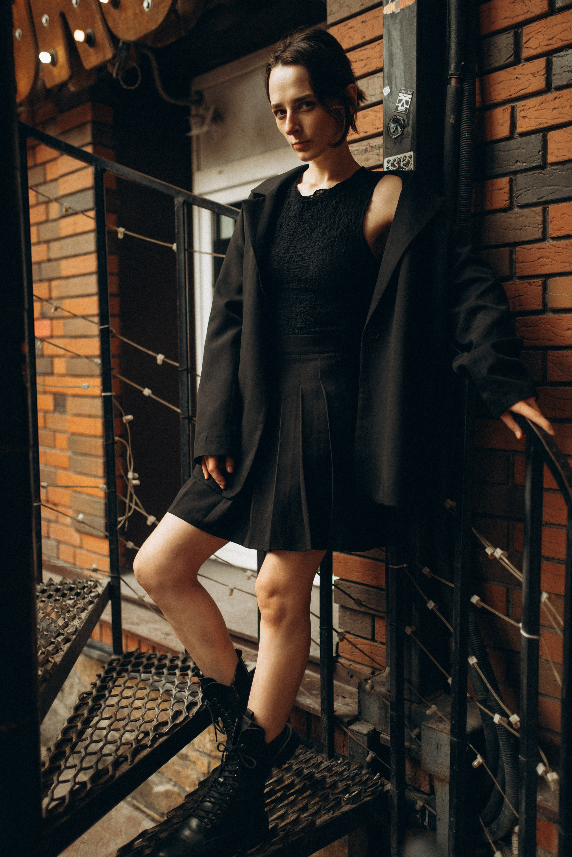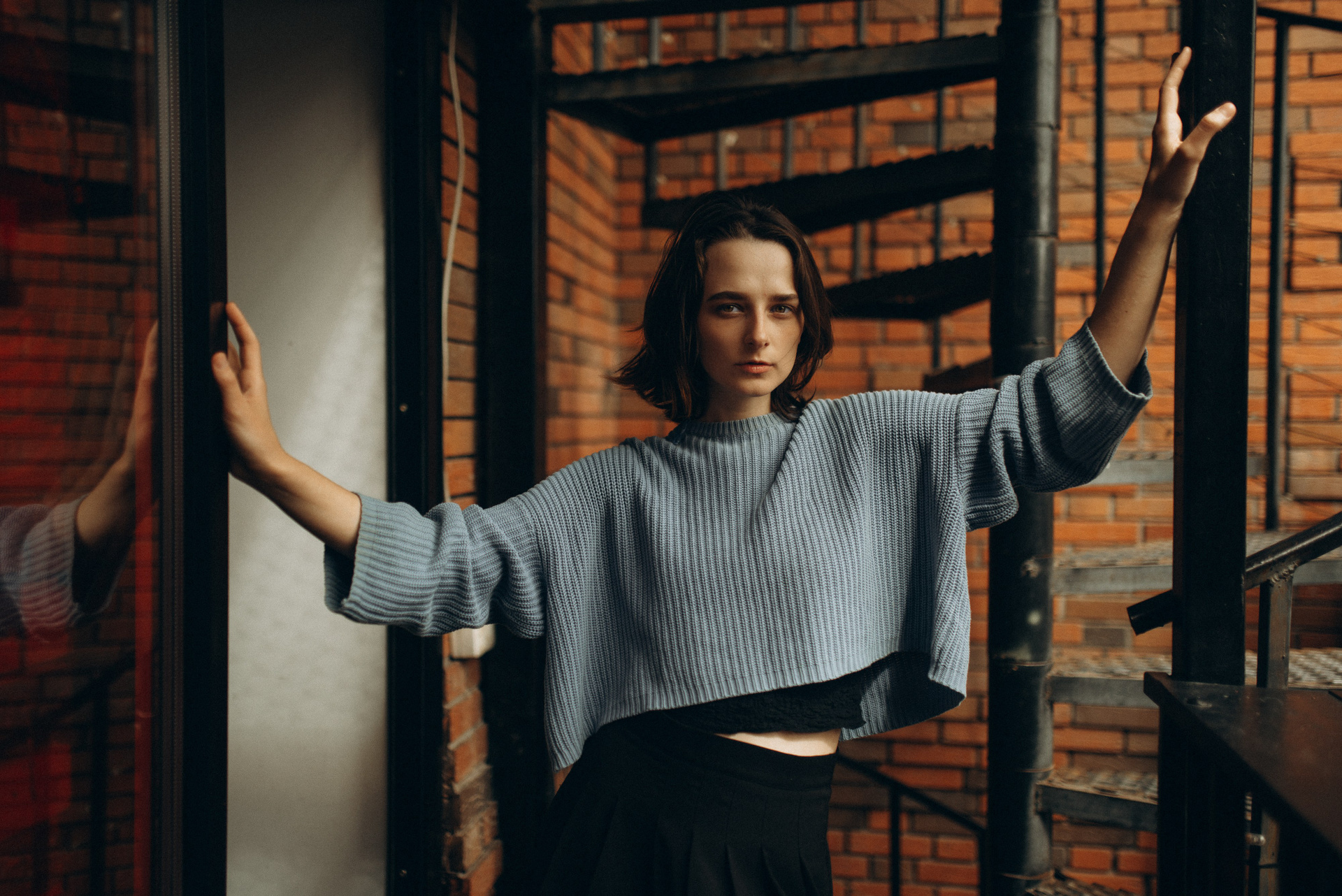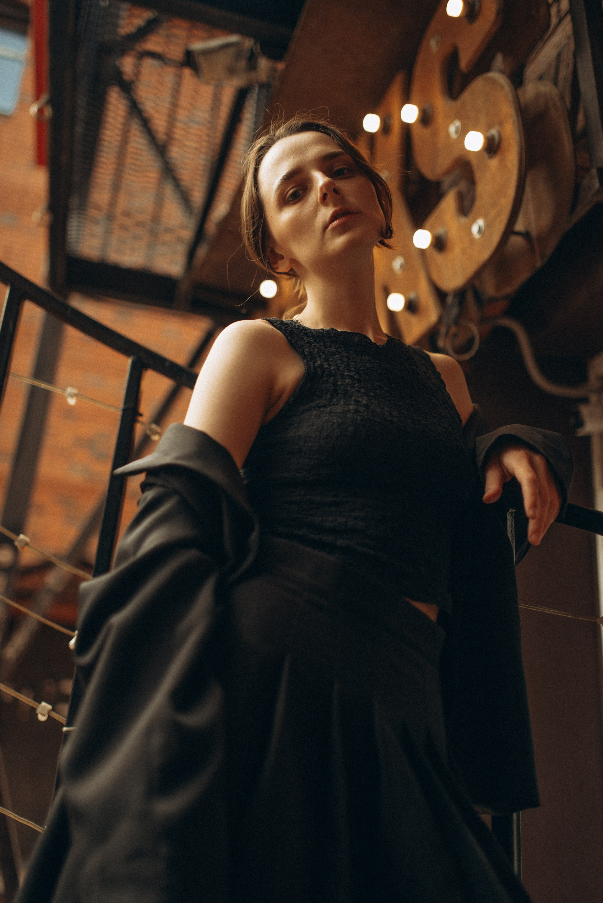 «Иногда город замирает, превращаясь в декорации к фильму, который еще не снят. В этой съемке мы искали эстетику в обыденном: в рыжем кирпиче, в изгибах черной стали, в случайном падении света».