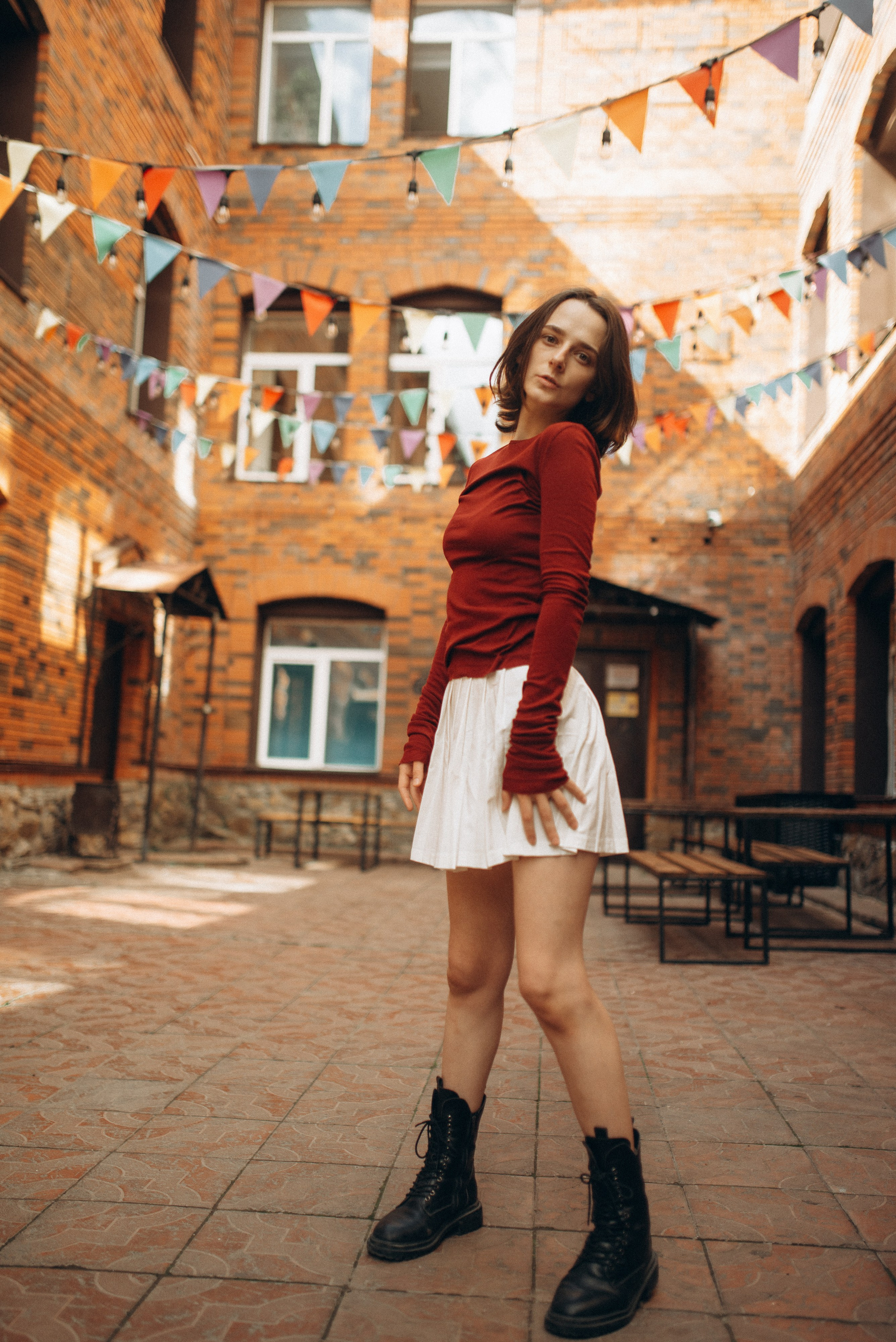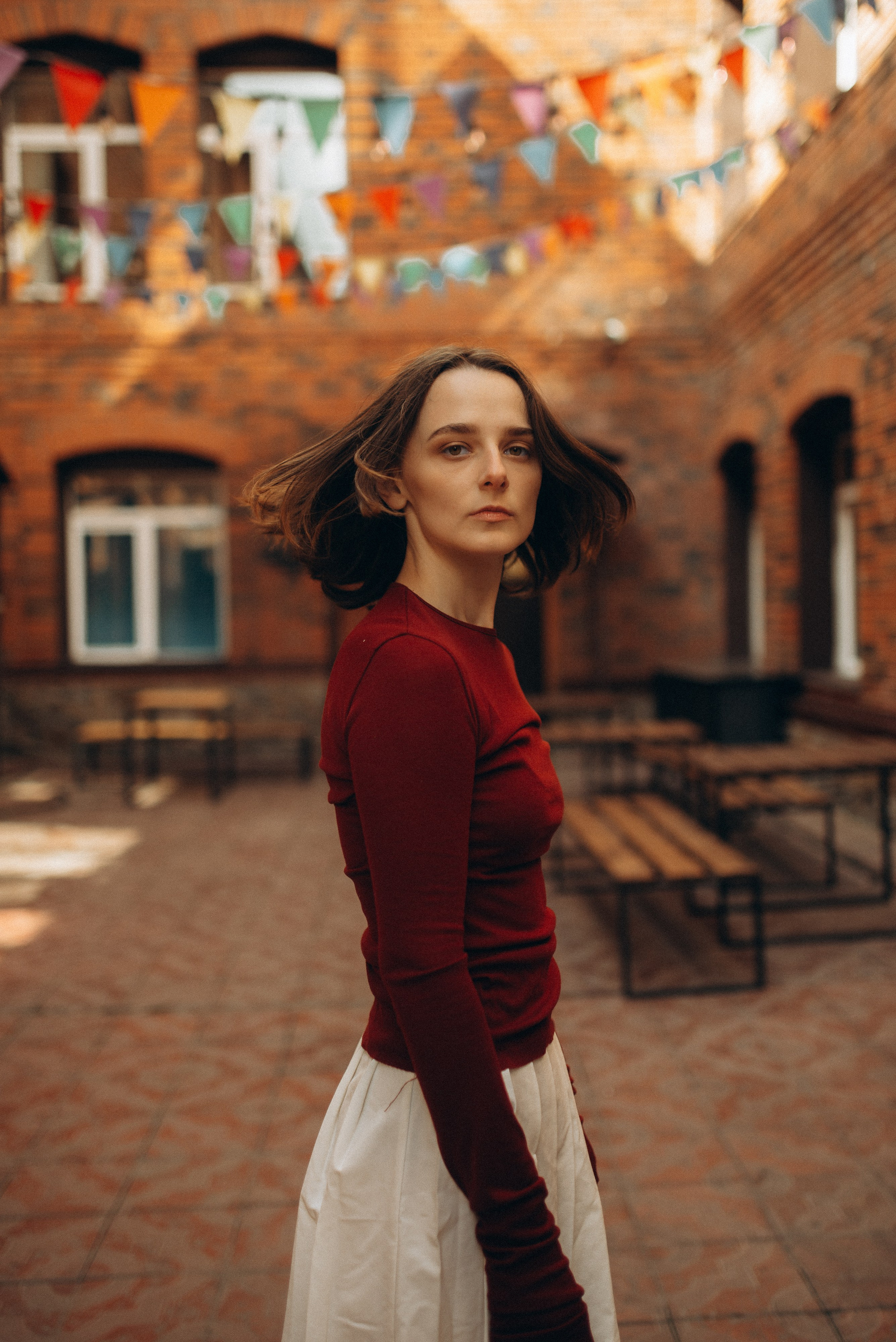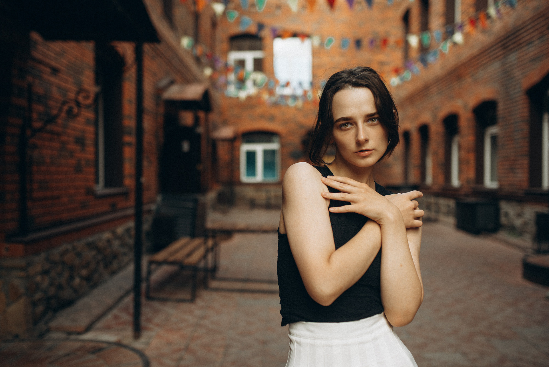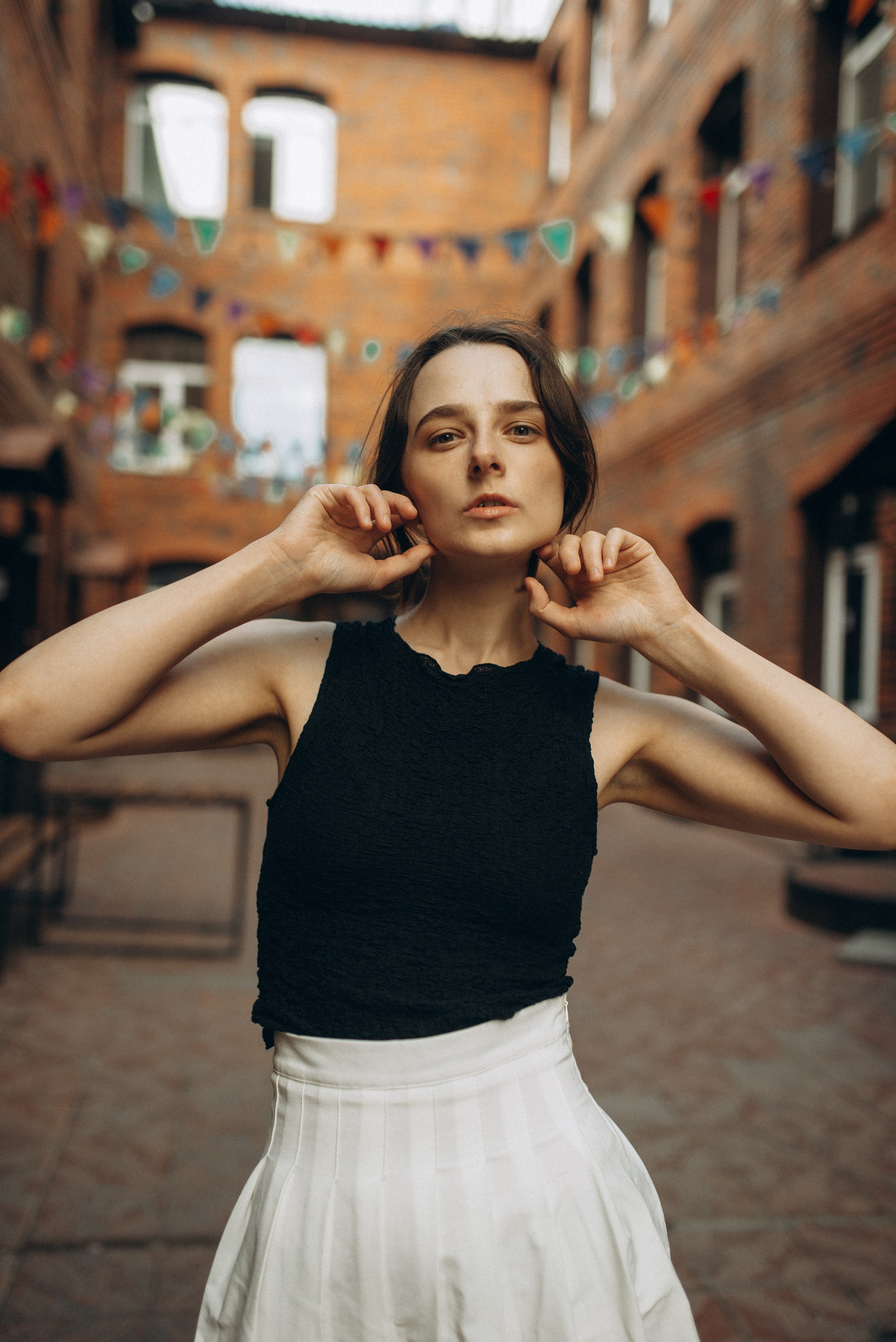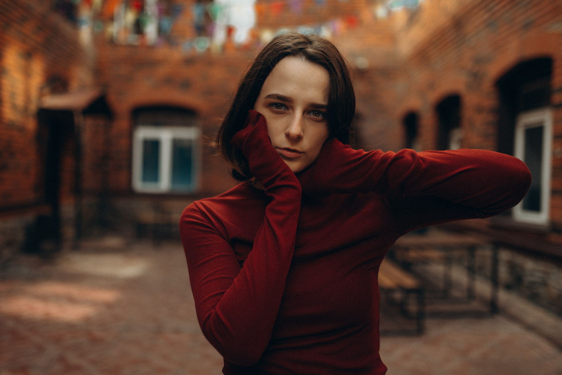 «Иногда город замирает, превращаясь в декорации к фильму, который еще не снят. В этой съемке мы искали эстетику в обыденном: в рыжем кирпиче, в изгибах черной стали, в случайном падении света».